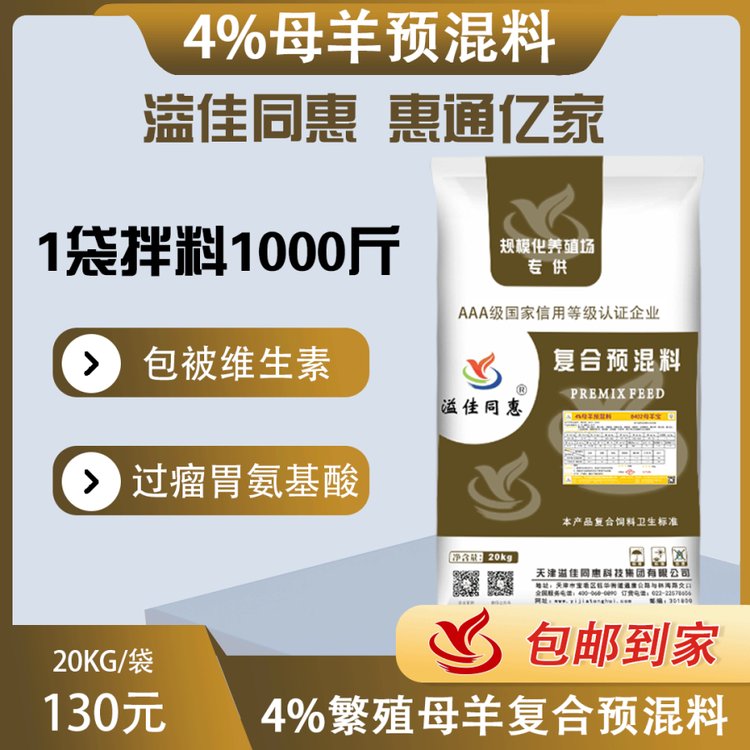 溢佳同惠牌的8402母羊预混料溢佳同惠包被维生素过瘤胃氨基酸产品:估价:130.00,规格:完善,产品系列编号:齐全 发布日期:2023-10-13